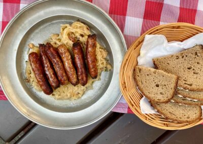 Es erwartet Sie eine gut bürgerliche Küche mit traditionellen fränkischen Schmankerln, unter anderem Original Nürnberger Rostbratwürste und ofenfrische Schäufele, wie wir sie unseren Gästen in vielen Jahrzehnten bereits servieren durften.