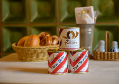 Unsere Bratwürste gibt es als Blaue Zipfel und als Rostbratwurst in der Dose für den kleinen Genuss zu Hause.