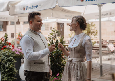 Genießen Sie dabei den schönsten Blick auf die Sebalduskriche, auch von unserer Terrasse, bei einem der süffigen Biere der Tucher Tradtitionsbrauerei oder einem guten Glas Wein von einem der Spitzenweingüter Frankens.